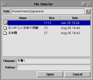 Note: 日本語のファイル名は、Photonシェル(pterm)では、入力および表示ができません。したがって、シェルでのlsコマンドの結果を日本語で表示することはできません。 ファイル・マネージャでは日本語のファイル名が使用できます。