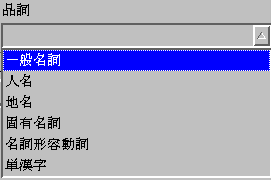 単語の品詞を選択します。「品詞」のタブを押すと、一覧が表示されます。