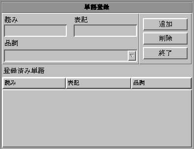 To delete a registered word from your User Dictionary, select the word in the word registration dialog and click on the 削除 (delete) button. |
