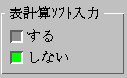 When this option is set, VJE will automatically confirm numerals and operators according to the currently selected character size. Numeral data and formulas can be input more efficiently, because you don't have to convert and confirm numerals and operators. In the 表計算ソフト入力 box, select する (yes) to set this option and しない (no) to disable it.